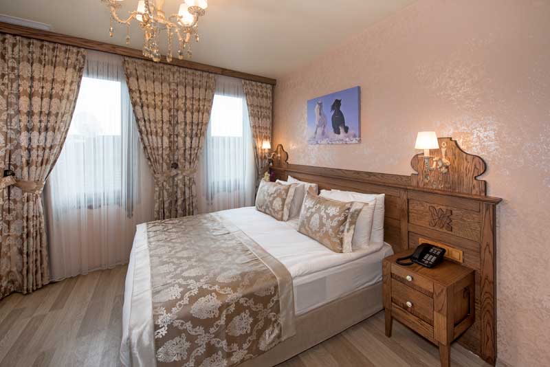 Double Rooms are with a city view.The rooms are at a graceful blend of the past and the present, designed in the Ottoman style yet offering all the modern amenities. Each room is equipped with electronic room key locks, air conditioning, minibar, safe deposit box, smoke dedector, satelite tv channel, LCD tv, wireless internet access and direct dial telephone.